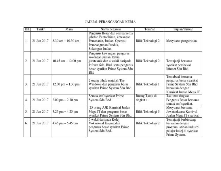 Ejercicio De 2 1 5 Menyediakan Jadual Kerja