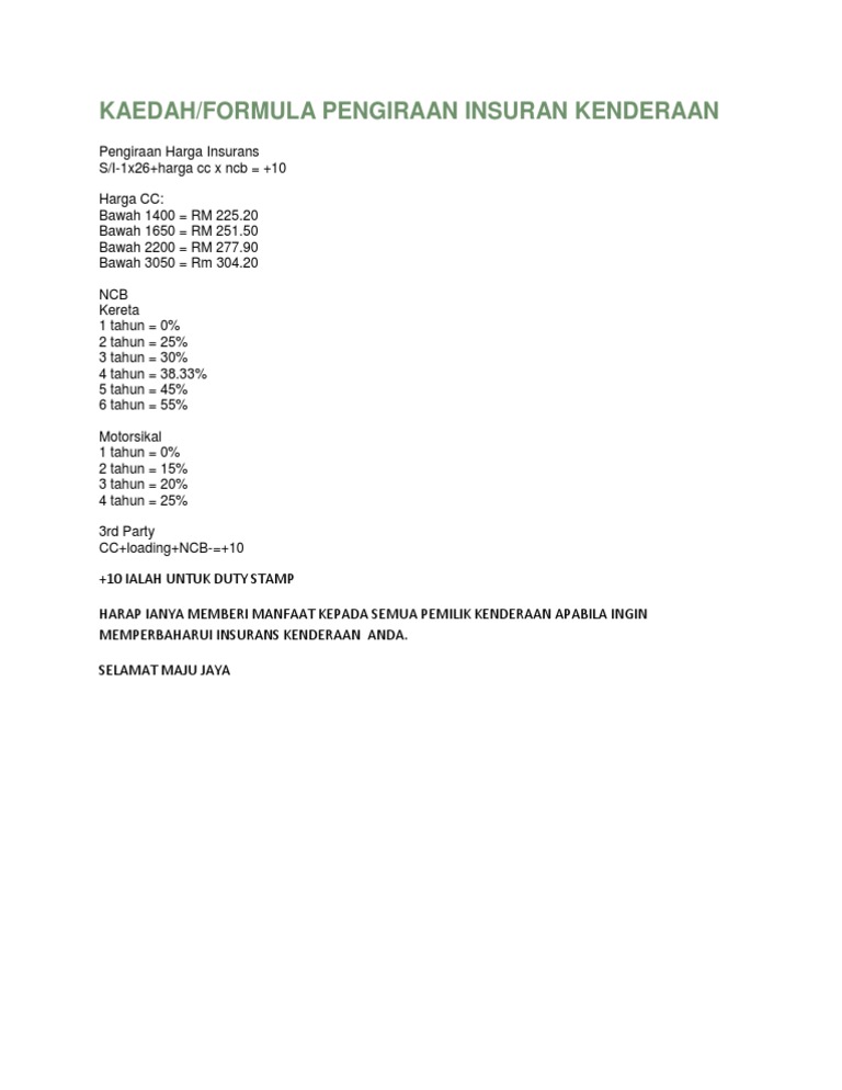Cara Pengiraan Insurans Umum Pdf